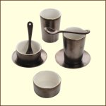 Les différents articles se déclinent par thèmes de couleur : blanc étoilé, blanc / miroir et bronze. La gamme se compose de coffrets café gourmand, de ramequins de différentes tailles, de minis salières et poivrières pour portions individuelles, des portes couteaux mais aussi des sphères de décoration…